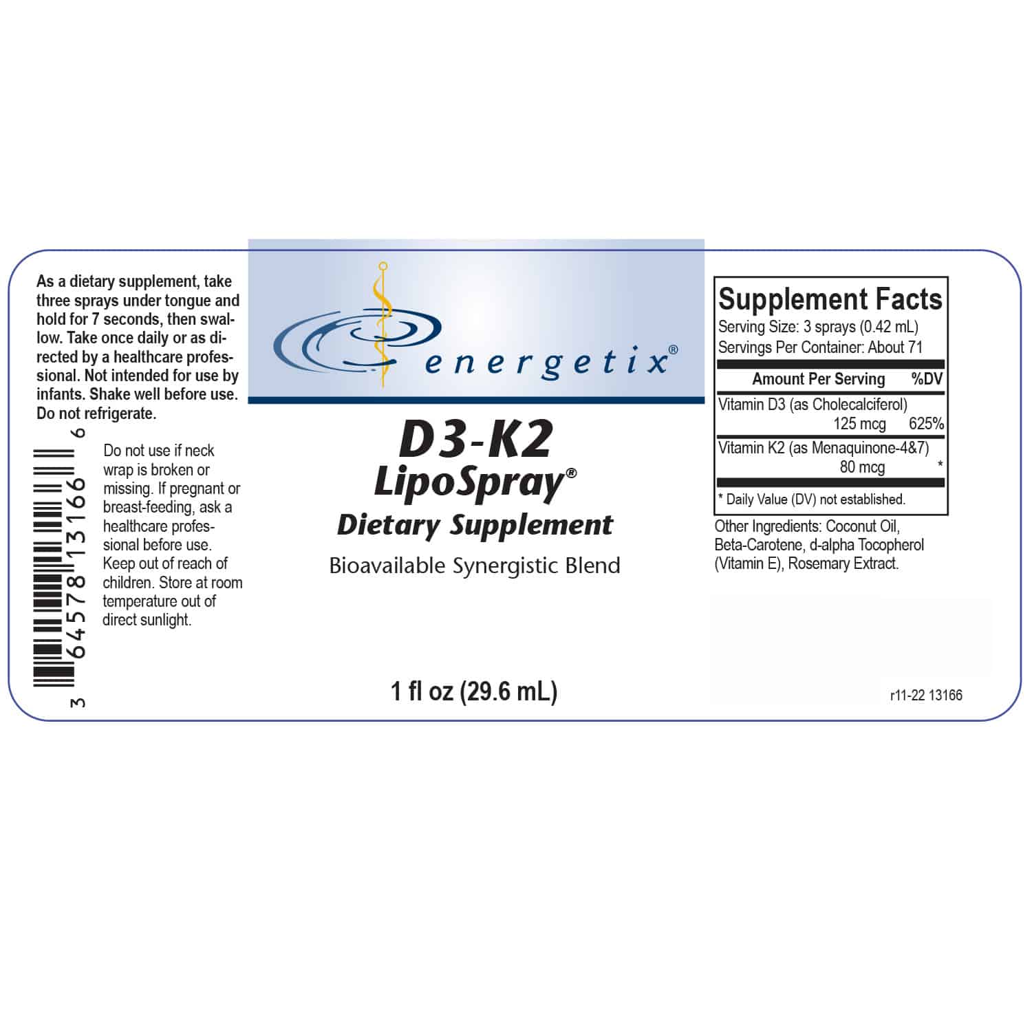 D3-K2 LipoSpray 1 oz. quantity